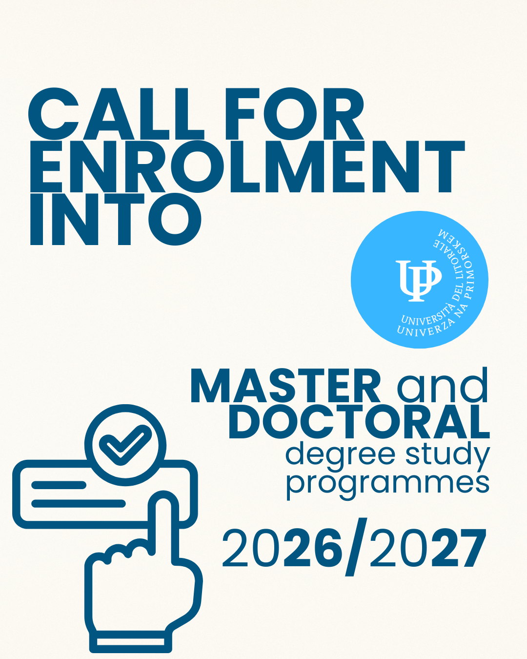 Description: The fair is intended for everyone considering continuing their studies at the postgraduate level at the University of Primorska. You can choose between continuing your studies in a field you have already chosen at the undergraduate level or deciding on a different field of study to expand your knowledge and skills. Tutors, professors, postgraduate students, staff from the student office, and the career center will be present at the fair and available for all information regarding 2nd and 3rd cycle studies. Take the opportunity for a personal conversation with representatives of individual study programs and receive first-hand information..