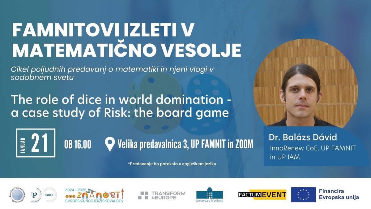 Naslednje predavanje Famnitovih izletov v matematično vesolje z naslovom Prirejanja v grafih: od stabilnih porok do cvetenja bo izvedla dr. Nina Chiarelli (UP FAMNIT in UP IAM) v sredo, 18. februarja 2026, ob 16.00 v Veliki predavalnici 3 na UP FAMNIT in ZOOM povezavi.