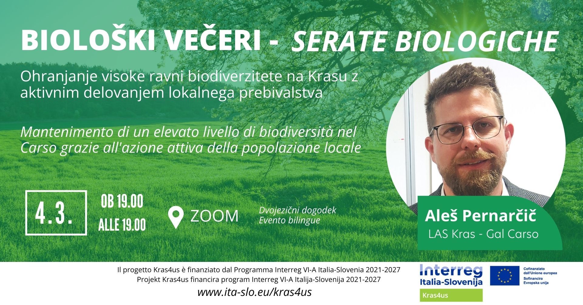 ponedeljek, 23. februar 2026 Aleš Pernarčič: Ohranjanje visoke ravni biodiverzitete na Krasu z aktivnim delovanjem lokalnega prebivalstva