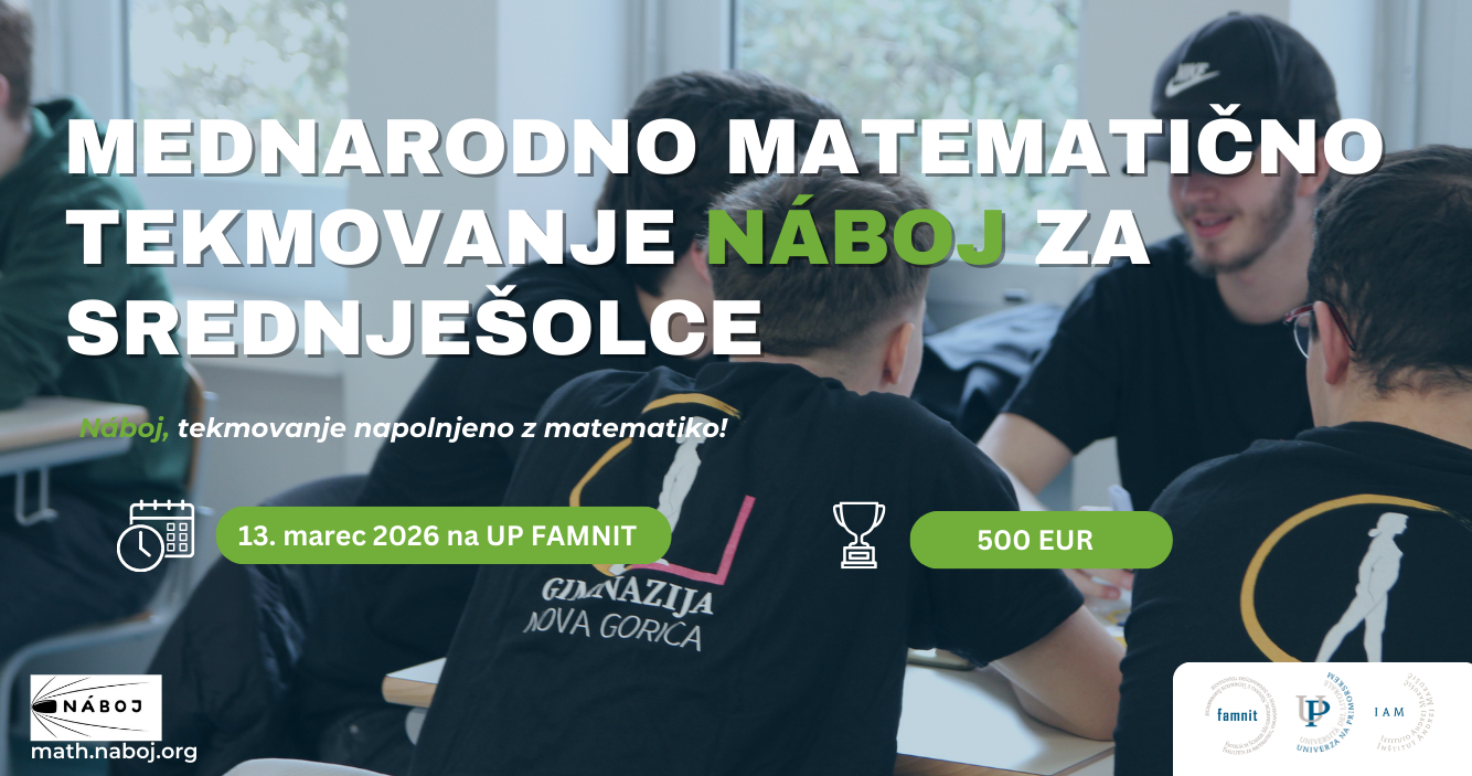 ponedeljek, 19. januar 2026 Napovedujemo: Mednarodno matematično tekmovanje Náboj na UP FAMNIT